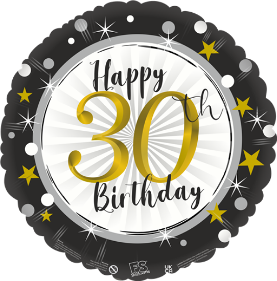 Searching for the perfect 30th Birthday Balloon Chester? First and foremost, entering your thirties is a major milestone that deserves a touch of holographic sparkle. Our 18-inch holographic foil balloons catch the light beautifully. They create a vibrant and festive atmosphere for any “Dirty Thirty” celebration.