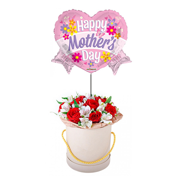 Surprise her with the elegant Mother’s Day Flower Box, a perfect blend of romance and celebration. First of all, we fill this luxury cream hat box with a mysterious arrangement of deep red roses and delicate white alstroemeria. This stunning gift features a festive pink heart-shaped balloon, making it the ultimate way to show your love in Chester. You can also explore our full flower collection to find other stunning arrangements for your special occasions.