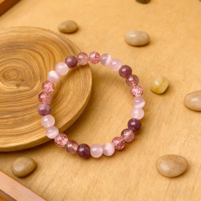 Our team ensures that every Pink Heart Cat’s Eye Bracelet meets high-quality standards. Moreover, the color palette shifts from elegant marble powder tones to deep magenta. This unique color gradient ensures that the jewelry matches any outfit perfectly. For this reason, you can wear it as a daily accessory or for special celebrations. The cat’s eye stone also reflects light beautifully, creating a ‘shimmer’ effect that symbolizes strength and clarity. Consequently, the wearer feels both stylish and empowered.